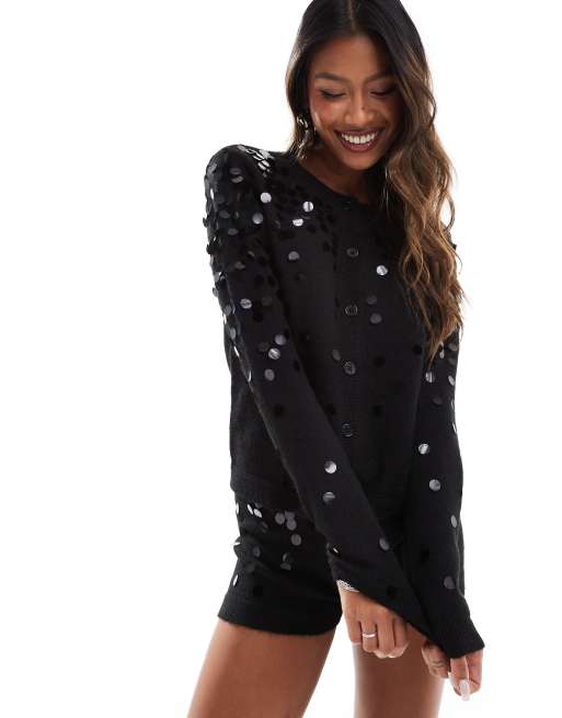 ASOS DESIGN – Strickjacke in Schwarz mit Rundhalsausschnitt und Pailletten, Kombiteil