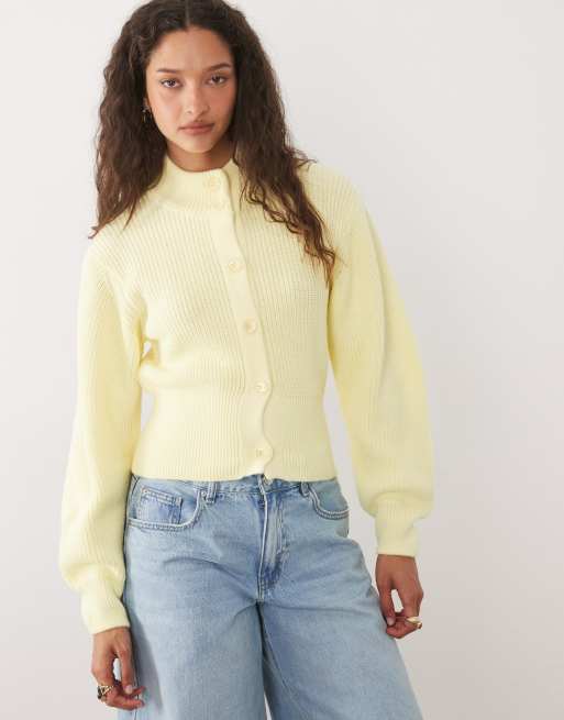 ASOS DESIGN – Strickjacke mit Stehkragen in Buttermilchgelb