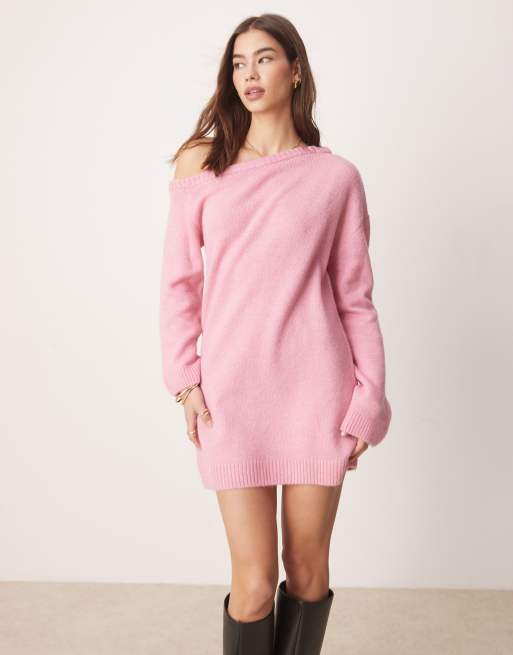 ASOS DESIGN – Strickkleid in sanftem Rosa mit One-Shoulder-Träger