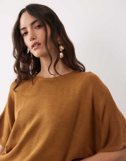 ASOS DESIGN – Strickoberteil in Braun mit Fledermausärmeln