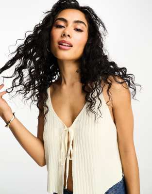 ASOS DESIGN – Strickoberteil in Cremeweiß mit geschnürter Vorderseite