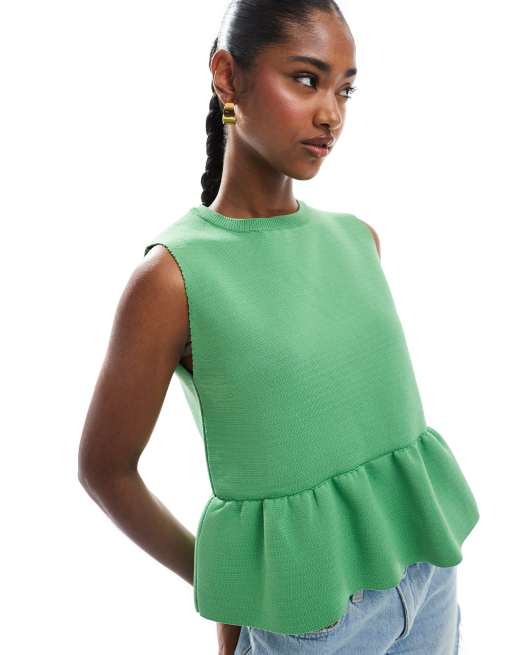 ASOS DESIGN – Strickoberteil in Grün mit strukturiertem Saum, Kombiteil