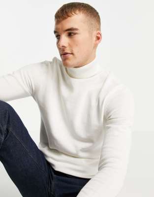ASOS DESIGN – Strickpullover aus Baumwolle in Weiß mit Rollkragen