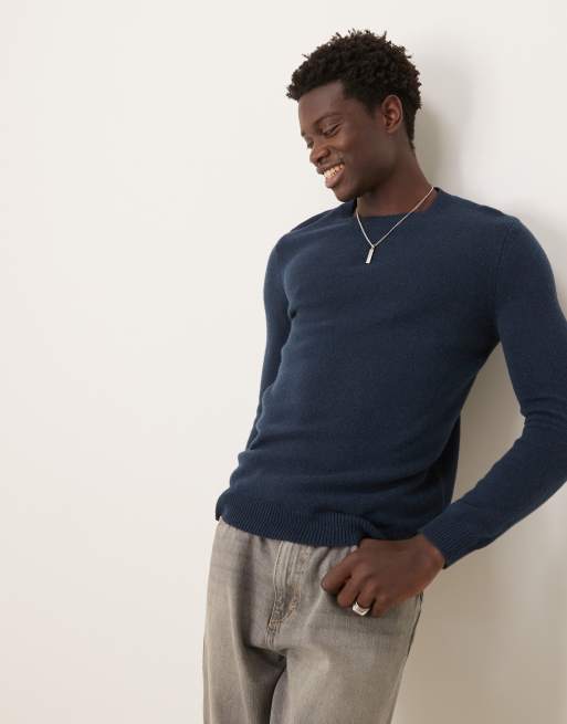 ASOS DESIGN – Strickpullover aus Lammwolle mit Rundhalsausschnitt in Marineblau