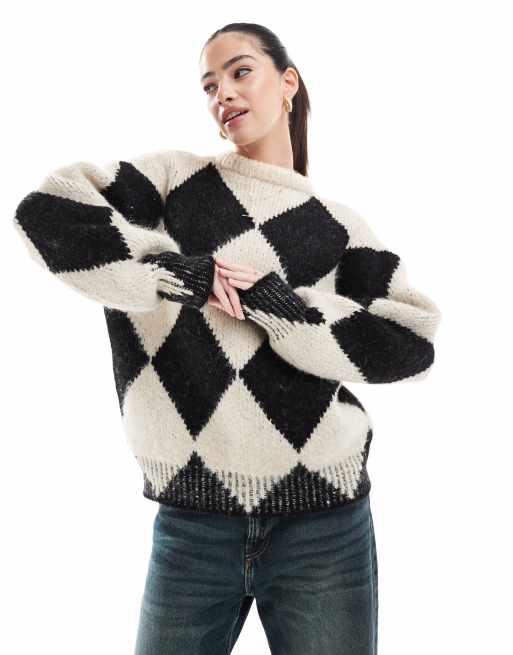 ASOS DESIGN – Strickpullover aus Wollmix mit Rautenmuster in Schwarz und Weiß