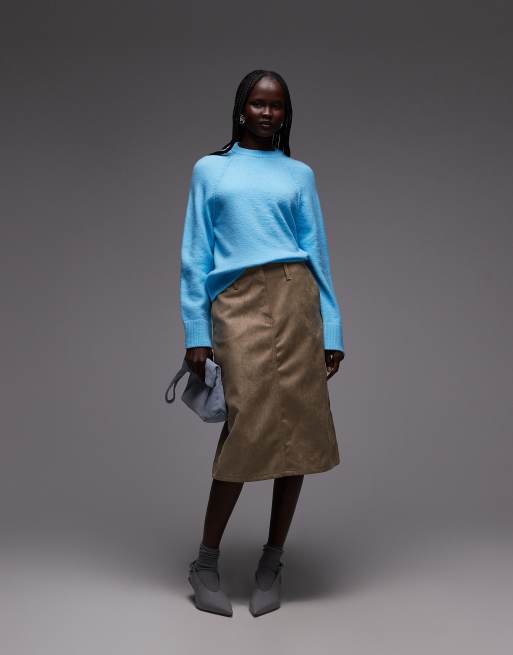 ASOS DESIGN – Strickpullover in Blau mit Rundhalsausschnitt und Raglanärmeln