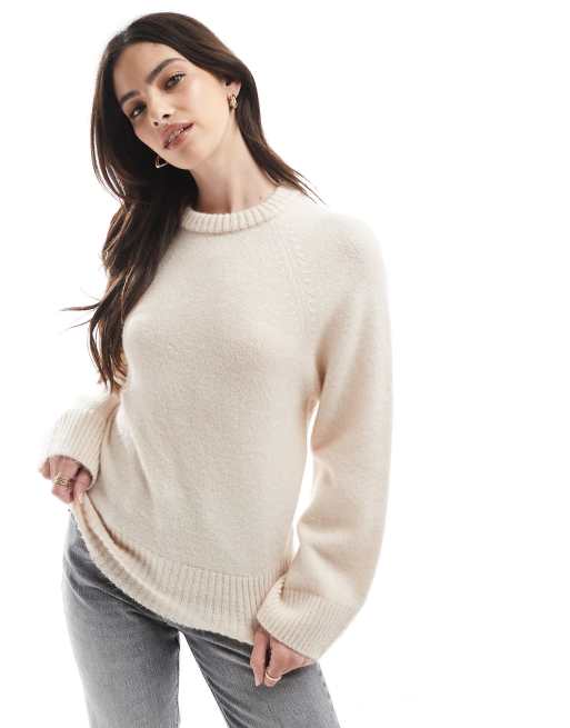 ASOS DESIGN – Strickpullover in Creme mit Rundhalsausschnitt und Raglanärmeln