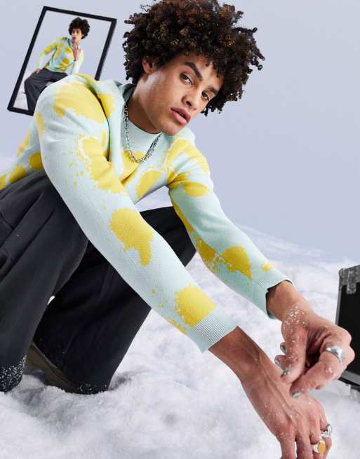 ASOS DESIGN – Strickpullover in Minzgrün mit Muskelshirt-Schnitt und Säurespritzer-Design