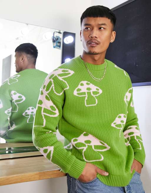 ASOS DESIGN – Strickpullover mit Pilz-Design in Grün