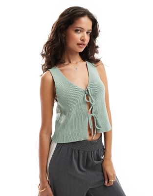 ASOS DESIGN – Strickweste in Pistaziengrün mit geschnürter Vorderseite