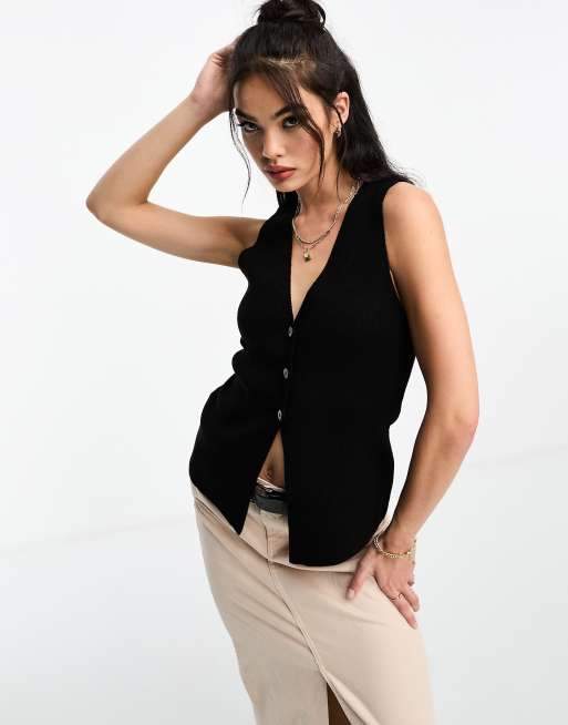 ASOS DESIGN – Strickweste in Schwarz mit Schlitz vorne