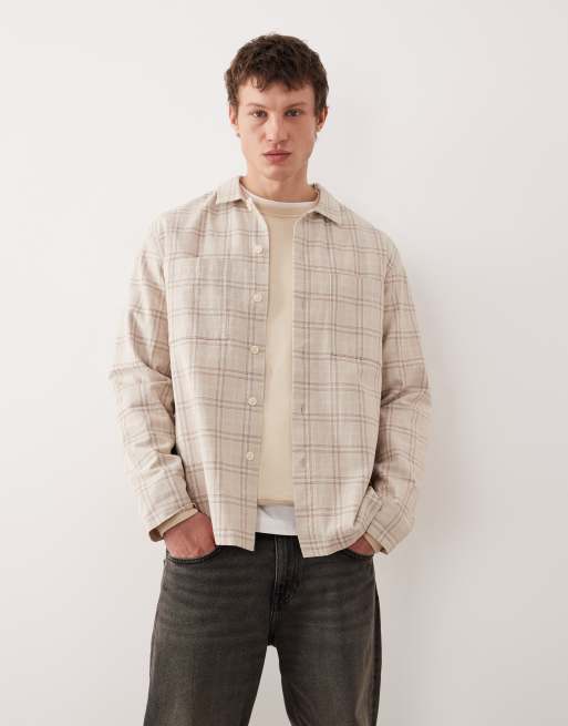 ASOS DESIGN – Strukturierte Hemdjacke in Beige kariert