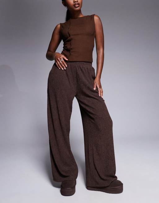 ASOS DESIGN – Strukturierte Hose mit weitem Bein in Schokoladenbraun