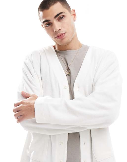 ASOS DESIGN – Strukturierte Oversize-Strickjacke in gebrochenem Weiß