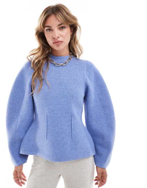 ASOS DESIGN – Strukturierter Pullover in Blau mit Rundhalsausschnitt