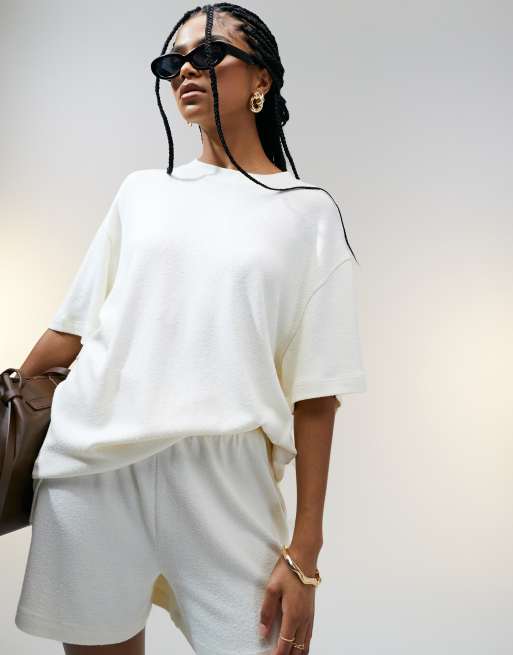 ASOS DESIGN – Strukturiertes Oversize-T-Shirt aus Strick in Cremeweiß