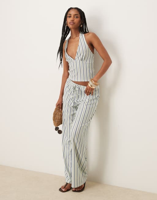 ASOS DESIGN – Strukturiertes Set in Elfenbein mit Nadelstreifen aus Neckholder-Oberteil und Hose