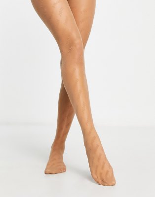 ASOS DESIGN – Strumpfhose in goldenem Bronze mit „J'adore“-Muster, 30 Denier