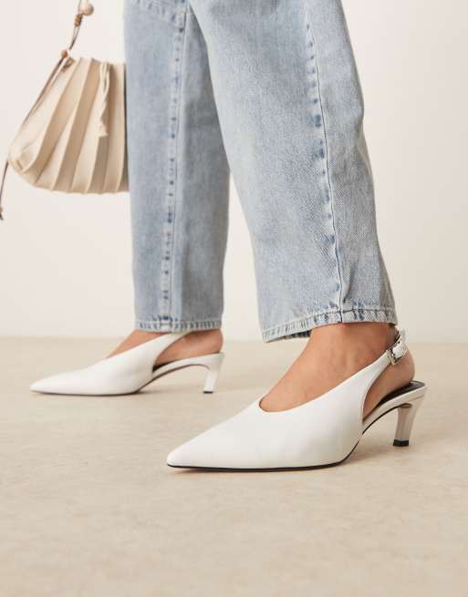 ASOS DESIGN – Suki – Schuhe in Weiß mit Kitten-Heel-Absatz und Fersenriemen