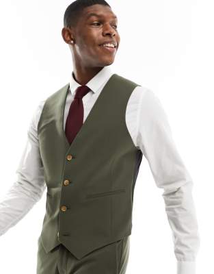 ASOS DESIGN – Super enge Anzugweste in Khaki
