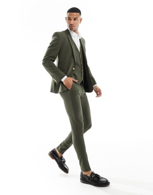ASOS DESIGN – Super enges Anzugsakko in Khaki