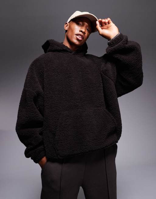 ASOS DESIGN – Super-Oversize-Kapuzenpullover aus Teddyfell in Braun