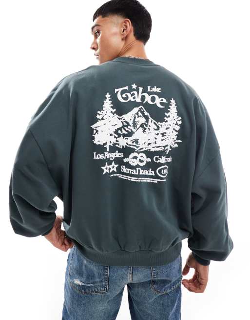 ASOS DESIGN – Super-Oversize-Sweatshirt in Anthrazit mit Bergprint