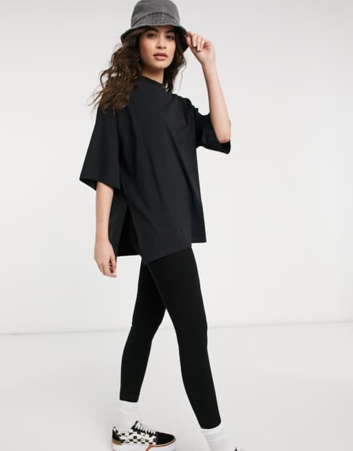 ASOS DESIGN – Super-Oversize-T-Shirt mit Seitenschlitz in Schwarz