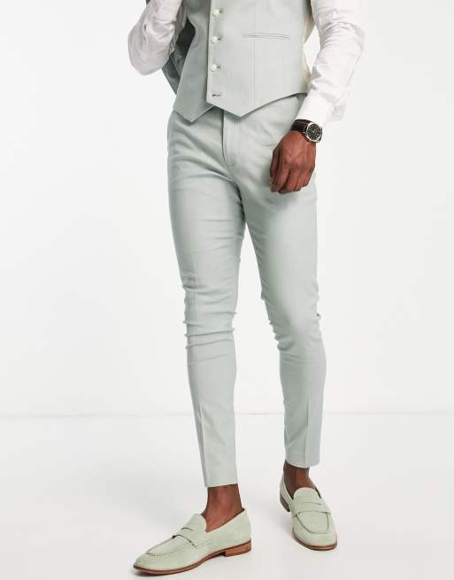 ASOS DESIGN – Superenge Anzughose aus Leinenmix in Salbeigrün