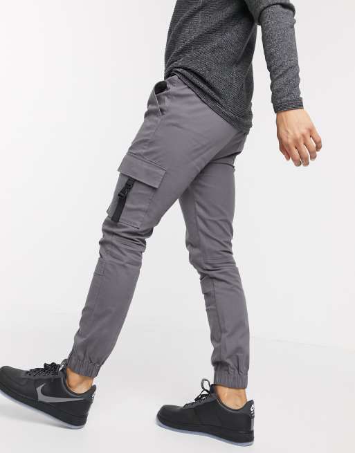 ASOS DESIGN – Superenge Cargo-Jogginghose in verwaschenem Schwarz mit Bündchen