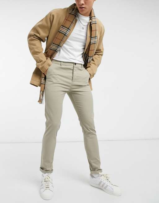 ASOS DESIGN – Superenge Chinohose in dunklem Beige