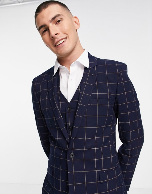 ASOS DESIGN – Superenger Anzug in Marineblau mit Fensterkaromuster