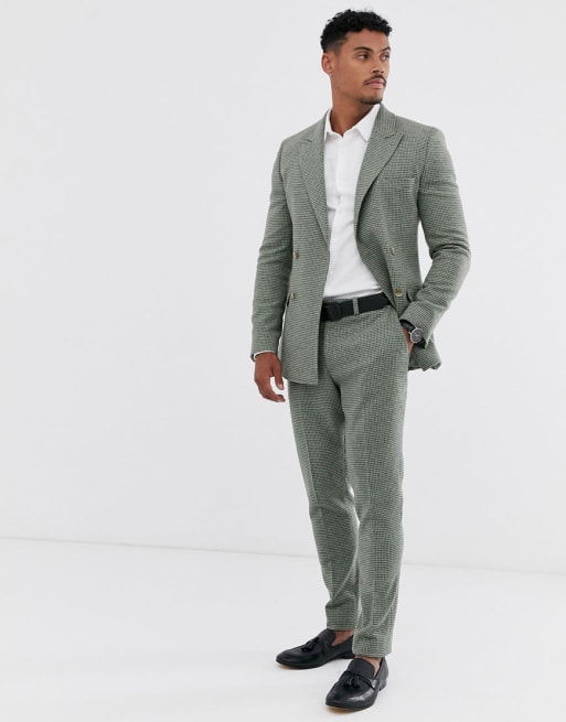 ASOS DESIGN – Superenger, zweireihiger Anzug aus grüner Wollmischung mit kleinem Karomuster