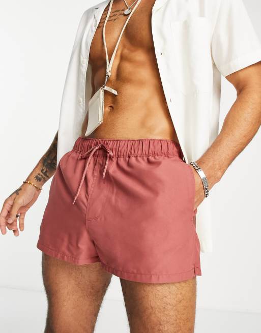 ASOS DESIGN – Superkurze Badeshorts in Rostrot