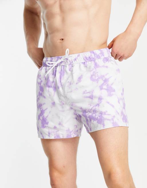 ASOS DESIGN – Superkurze Badeshorts mit lila Batikmuster