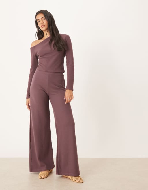 ASOS DESIGN – Superweiche Hose in staubigem Pflaumenlila mit weitem Bein, Kombiteil