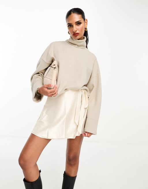 ASOS DESIGN – Superweicher Rollkragenpullover in warmem Cremeweiß mit Bündchendetail, Kombiteil