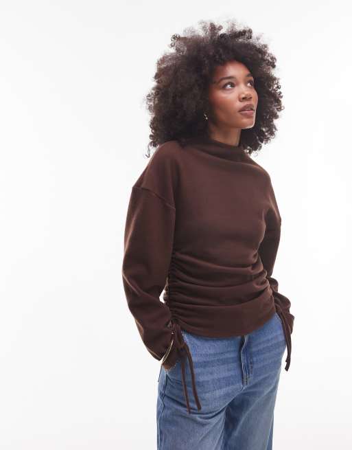 ASOS DESIGN – Superweiches Oberteil in dunklem Schokobraun mit Fledermausärmeln und Stehkragen