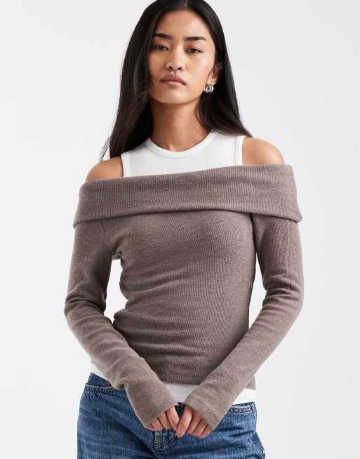 ASOS DESIGN – Superweiches, zweilagiges Oberteil mit abfallender Schulterpartie