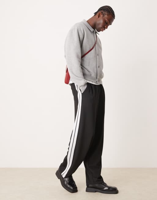 ASOS DESIGN – Superweite, elegante Jogginghose in Schwarz mit Streifen