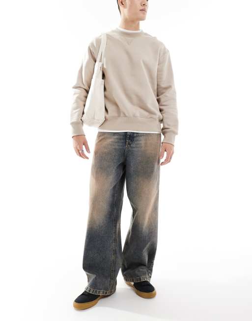 ASOS DESIGN – Superweite Jeans in mittelblauer Waschung mit Farbstich