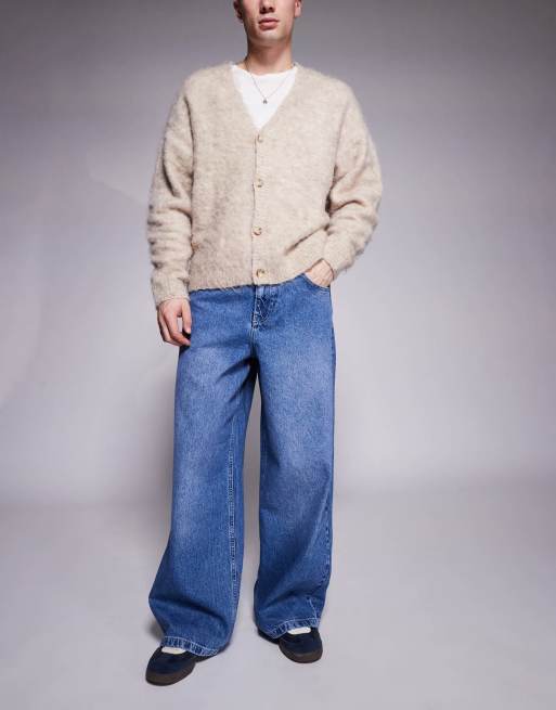 ASOS DESIGN – Superweite Jeans in mittelblauer Waschung mit Print hinten