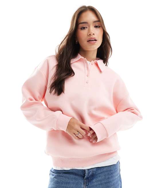 ASOS DESIGN – Sweatshirt in Babyrosa mit Henley-Detail