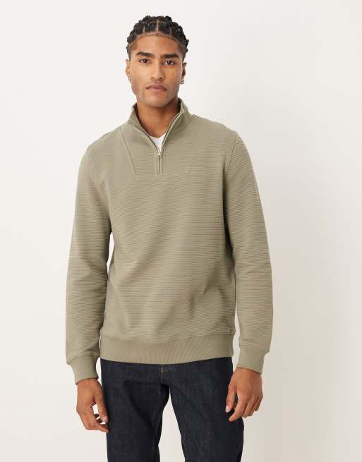 ASOS DESIGN – Sweatshirt in Grau mit kurzem Reißverschluss und geripptem Kragen