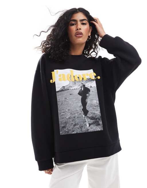 ASOS DESIGN – Sweatshirt in Schwarz mit „J'adore“-Grafik