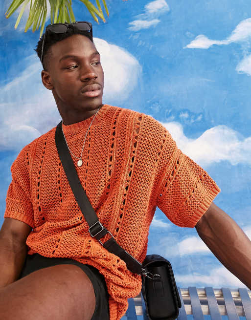 ASOS DESIGN – T-Shirt aus Pointelle-Strick in Rostrot