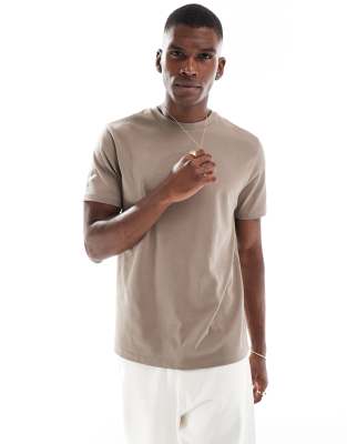 ASOS DESIGN – T-Shirt aus schwerem Stoff in Braun mit Rundhalsausschnitt