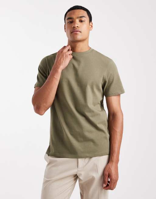 ASOS DESIGN – T-Shirt aus schwerem Stoff in Khaki mit Rundhalsausschnitt
