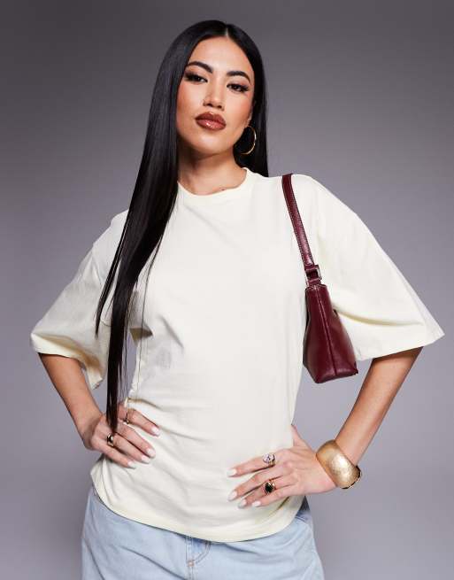ASOS DESIGN – T-Shirt in Buttermilchgelb mit gerafften Seiten