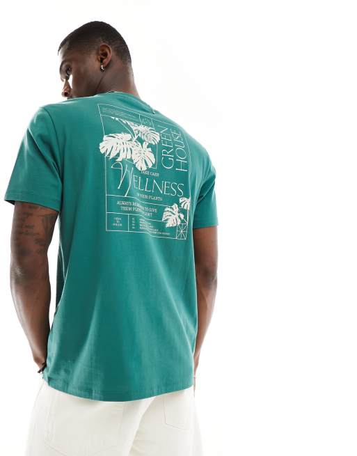 ASOS DESIGN – T-Shirt in Grün mit Pflanzen-Rückenprint